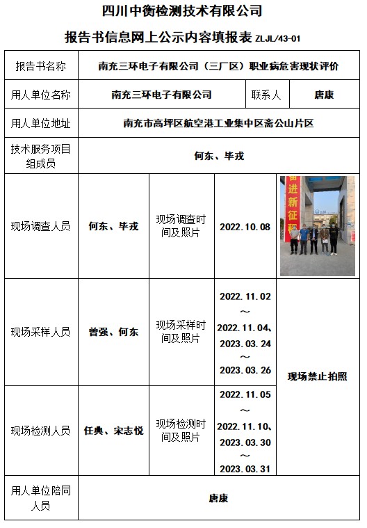 南充三环电子有限公司(三厂区)职业病危害现状评价