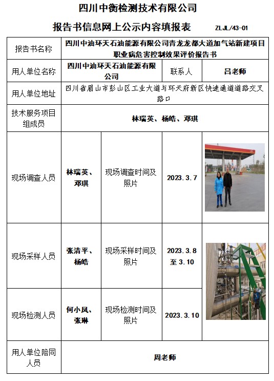 四川中油环天石油能源有限公司青龙龙都大道加气站新建项目职业病危害控制效果评价