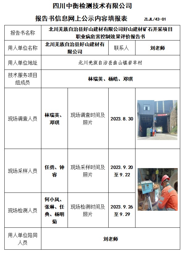 北川羌族自治县好山建材有限公司好山建材矿石开采项目 职业病危害控制效果评价报告书