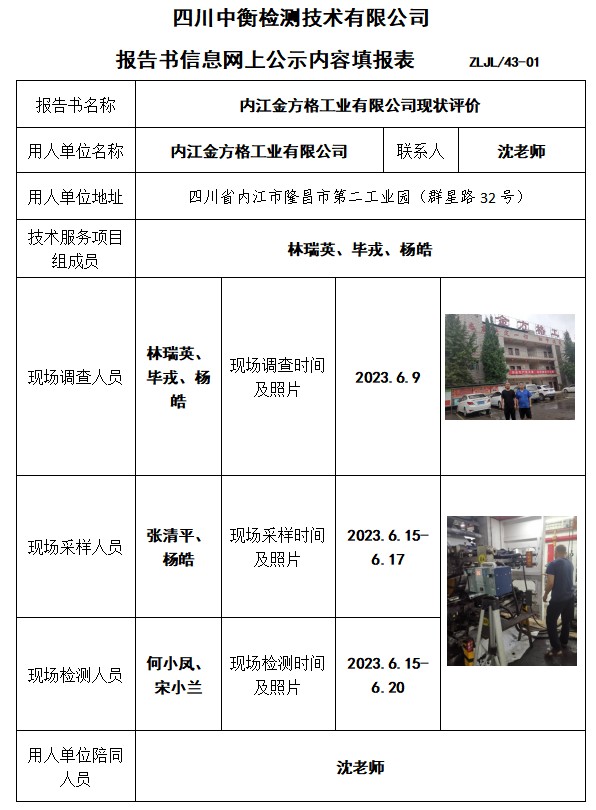 内江金方格工业有限公司现状评价