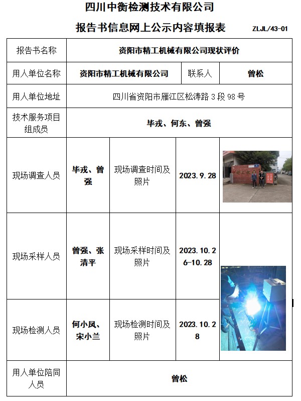 资阳市精工机械有限公司现状评价