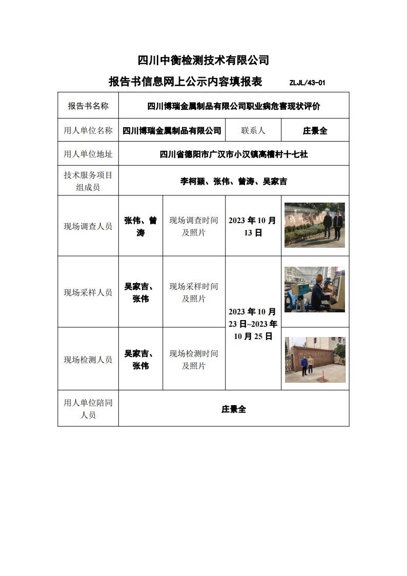四川博瑞金属制品有限公司职业病危害现状评价