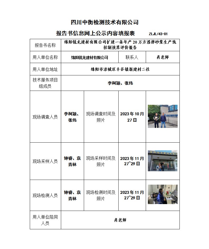 绵阳锐龙建材有限公司扩建一条年产20万方湿拌砂浆生产线控制效果评价报告