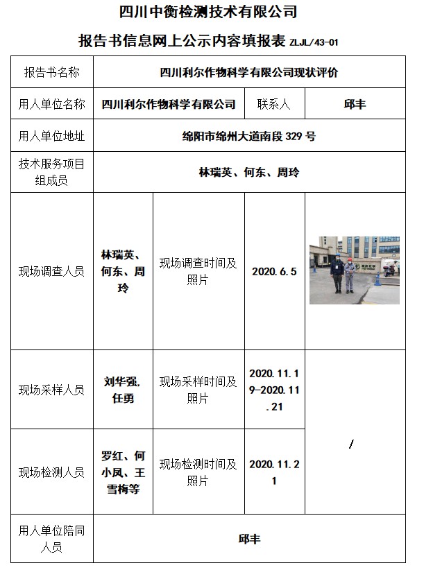 四川利尔作物科学有限公司现状评价