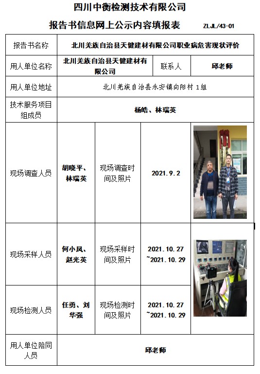 北川羌族自治县天健建材有限公司职业病危害现状评价