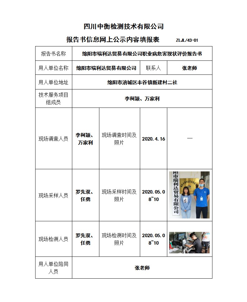 绵阳市瑞利达贸易有限公司职业病危害现状评价报告书