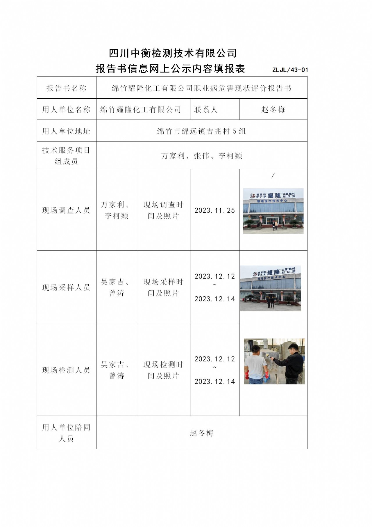 绵竹耀隆化工有限公司职业病危害现状评价