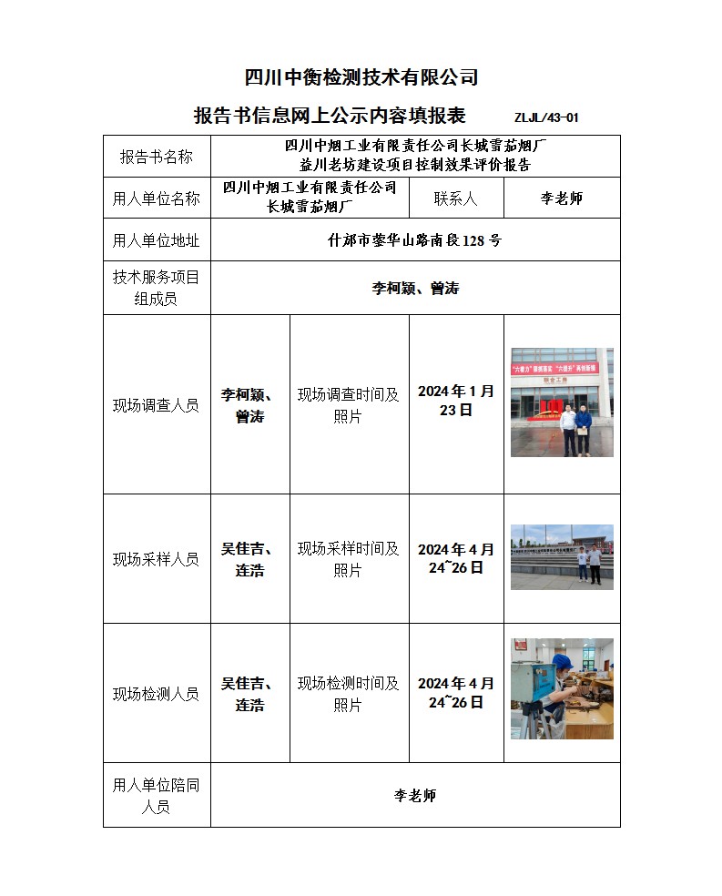 四川中烟工业有限责任公司长城雪茄烟厂 益川老坊建设项目 职业病危害控制效果评价报告书