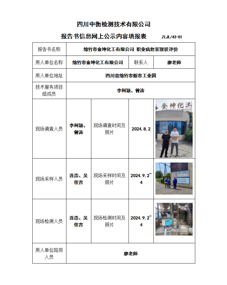 绵竹市金坤化工有限公司 职业病危害现状评价报告书
