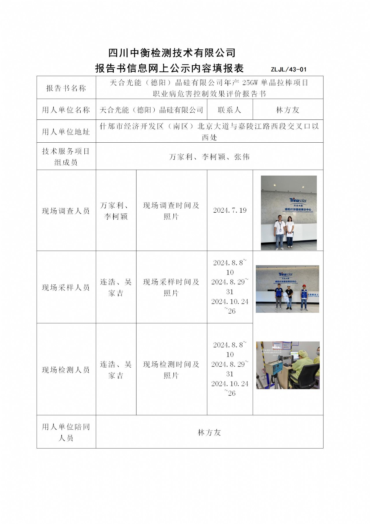 天合光能(德阳)晶硅有限公司年产25GW单晶拉棒项目 职业病危害控制效果评价