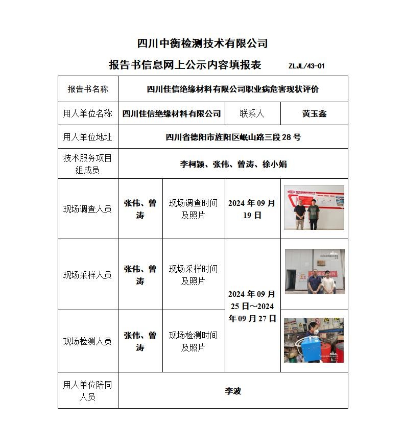四川佳信绝缘材料有限公司职业病危害现状评价