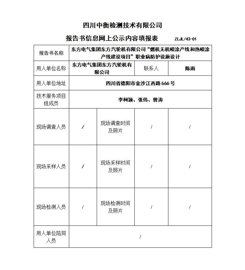 东方电气集团东方汽轮机有限公司“燃机无机喷涂产线和热喷涂产线建设项目”职业病防护设施设计
